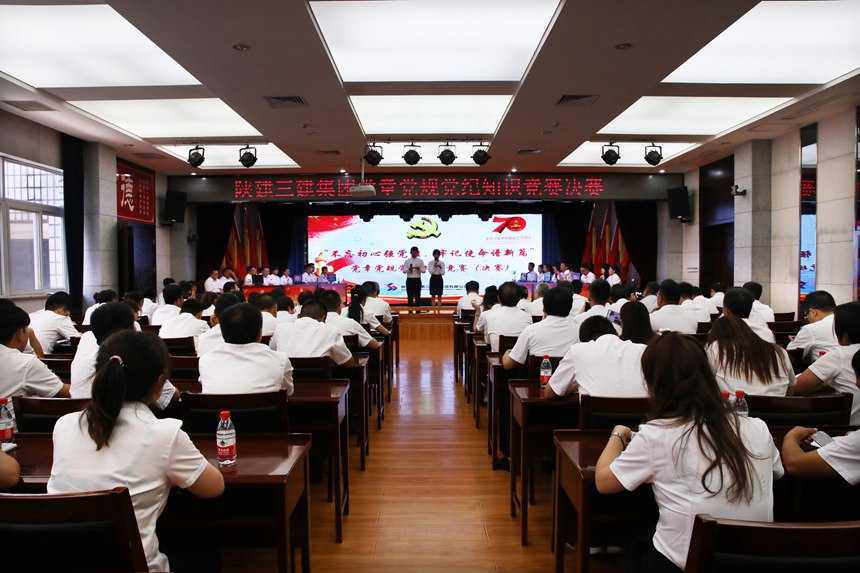 8月16日下午,集團公司慶祝建國70周年暨“不忘初心強黨性,牢記使命譜新篇”黨章黨規黨紀知識競賽決賽在第三會議室拉開帷幕,黨委副書記、總經理陳建致辭。陜建集團黨委宣傳部部長劉毅,黨委組織部黨建主管都暉,集團公司黨委書記、董事長李家衛,紀委書記馬西琴,工會主席張穎出席活動。 來自基層黨組織的6支代表隊經過嚴格的筆試初賽選拔,最終脫穎而出進入決賽。決賽環節現場氣氛熱烈,選手們配合默契,沉著冷靜,憑借扎實的理論基礎、良好的心理素質及優秀的應變能力應對了必答、搶答、初心展示、風險答題等環節,綜合展示了三建黨員隊伍良好的政治素養和精神面貌。經過激烈角逐,市政工程公司代表隊獲得一等獎,一項目、四項目、設計院聯合代表隊,陜北公司、省外管理部、益融寶通聯合代表隊獲得二等獎,第一工程公司、設備安裝公司、公司機關代表隊獲得三等獎,第五工程公司獲得優秀組織獎。辛晨等四名同志獲得優秀個人獎項。 自“不忘初心、牢記使命”主題教育開展以來,三建集團黨委深化認識,多措并舉,圍繞集團公司中心工作開展了多種形式的學習教育活動。作為檢驗主題教育成果的“考試”,本次競賽強化了黨員職工對黨的十九大精神及習近平新時代中國特色社會主義思想的學習,加深了對黨章黨規黨紀的認識和理解,進一步引導了黨員干部職工不忘初心、牢記使命,切實把學習成果、檢視整改轉化為推動集團高發展的強勁動力。