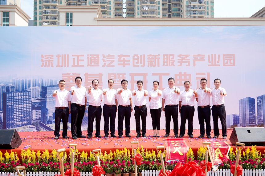 9月7日上午,位于深圳市龍華區和平路上的深圳正通汽車創新服務產業園內彩旗飄揚,鼓聲震天,一輛輛工程車整裝待發,項目員工身著工裝,精神抖擻。這是陜建集團進軍大灣區市場的重點建設項目,也是三建集團集團在大灣區負責施工的首個大型項目,是集團公司“走出去”戰略邁出的重要一步。出席典禮儀式的主要領導有中國正通汽車服務控股有限公司(以下簡稱正通公司)副董事長王昆鵬、陜建集團黨委副書記、總經理張文琪,副總經理雷曉義、總會計師莫勇、集團公司董事長李家衛、工會主席張穎、總會計師王斐、副總經理任浩以及來自建設單位和施工單位的100多人共同見證了這一歷史時刻。
